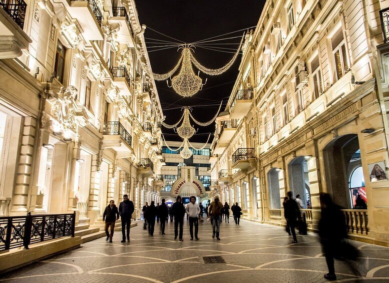 First day tour will start from Old City Tour with tour guide . Orijinal storey of centuries Old Baku will take you to survey of history . Nizami street walking tour , street food tastings will be modern part of tour . Cruise tour will show you masmarasing Caspian sea beauty . Baku Boulevard walking tour will be rest before night tour . Panoramic tour will start around 7pm and view of Flame towers , Night view of city from upland park will push you taking amazing photos . On day two you will travel to Gobustan - with 3D Bio Museum , open air rock museum .After detailed excursion of Gobustan tour will contunie to Moon Planat - Mud Volnanos , some of rare views all over the world . Experience of Gobustan tour will go to different part of Baku . Miracle of Abseron Region - Atesgah Temple . Zorastian Temple will surprise you al lot . After Atesgah tour will take place to Yanardag - Fire Mountain . Orijinal fire , ancient history , history by locals - it will be some of rare memorable tours . After Yanardag tour will contunie in Baku city .Modern sing of Baku - Haydar Aliyev Cultural Centre .