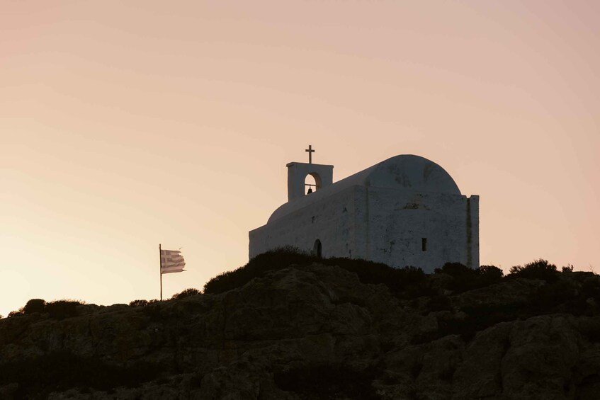 At Poliegos, Greece’s largest uninhabited island, be greeted by dazzling turquoise waters. Stop at Galazia Nera (Blue Bay), famous for its crystal-clear waters. Take a dip, snorkel among vibrant marine life, or paddle into sea caves with our stand-up paddleboards (SUPs). Explore Mersini Bay, a serene spot with warm, shallow waters, perfect for a peaceful swim. Continue along the coastline to Red Cave, a volcanic formation with striking red and orange hues. If conditions allow, paddle inside the cave for a close-up look at its colours.