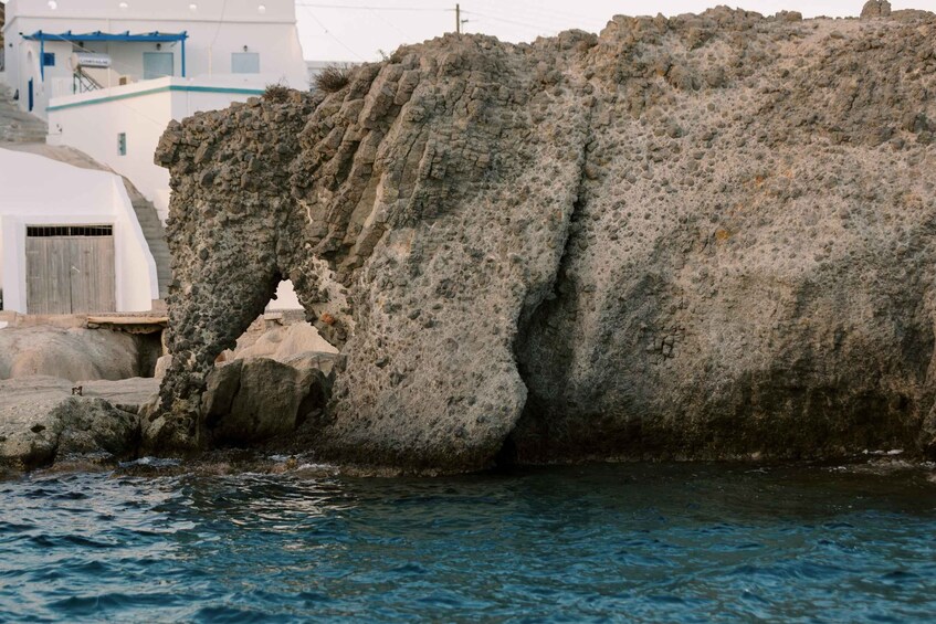 The highlight of the tour is Kleftiko, one of Milos’ most iconic locations. This historic pirate hideout boasts striking white rock formations, crystal-clear waters, and natural sea caves. Snorkel among the caves, paddleboard through the arches, or soak in the scenery. Finally, visit Sikia Cave, a sea cave with a collapsed roof where sunlight illuminates the waters. Enter by boat and enjoy a final swim in this hidden sanctuary.