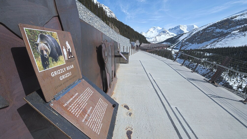 Next, enjoy exhilarating views from the Glacier Skywalk. Your adrenaline continues to pump even faster as you step out on the cantilevered walkway, made of clear glass over a 900-foot drop. Feel like you're floating above the ice-capped mountain peaks and vast glacier-formed valleys while walking the observation platform 918 feet (280 m) above the Sunwapta Valley—filled with boulders, streams, waterfalls, and numerous wildlife.