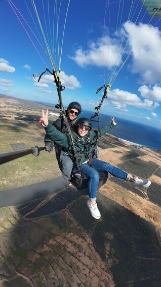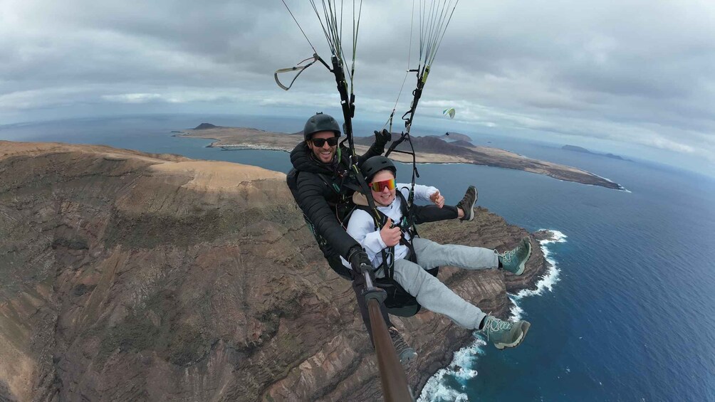 • Tandem paragliding flight over Lanzarote's volcanic coastline.