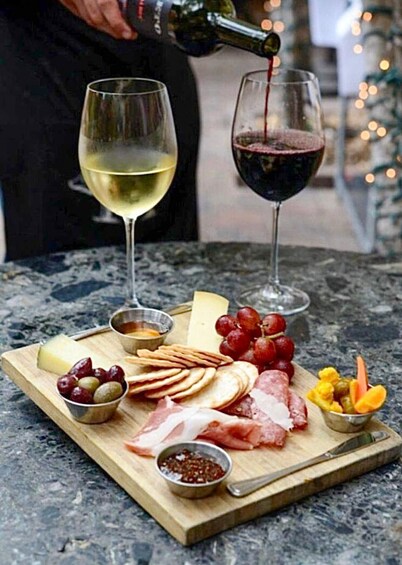 During the tasting, explore a curated selection of wines that reflect a personal and modern interpretation of classic local varietals. The experience is accompanied by a generous charcuterie board featuring local cured meats, cheeses, and other regional delicacies.