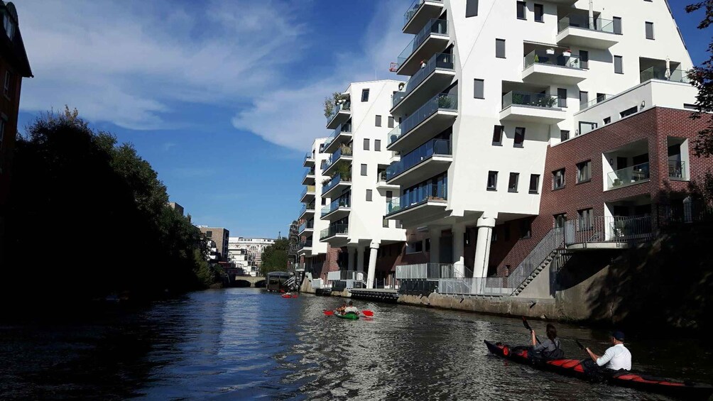 Leave the Elster flood bed and turn into the Weiße Elster, and see Germany's first mail-order business and the Gründerzeit industrial buildings in Plagwitz. Travel along the Weiße Elster and navigate the Karl-Heine-Canal.
