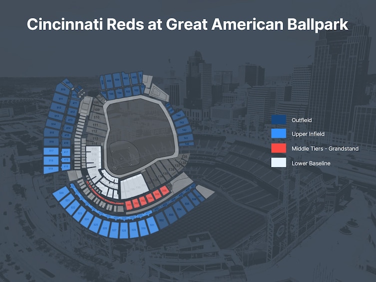 Seeing the Cincinnati Reds play a baseball game at Great American Ballpark is an experience like no other. Enjoy assigned seating with your game ticket and be there live to see the thrilling action on the mound as the biggest stars in Major League Baseball put on a show you'll never forget. Great American Ball Park in Cincinnati is recognised for its picturesque setting along the Ohio River and the “Roebling Suspension Bridge” views from the stadium. Home to the Cincinnati Reds, the ballpark's modern amenities and family-friendly features make it a popular destination. With a wide range of concessions, facilities and matchday entertainment on hand, whether you're a solo traveller, or attending with friends and loved ones, a trip to the ballgame to see the Cincinnati Reds is an experience not to be missed!