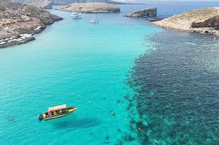 Bateau à moteur privé 4hrs autour de Comino Crystal Blue Lagoon Caves