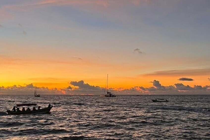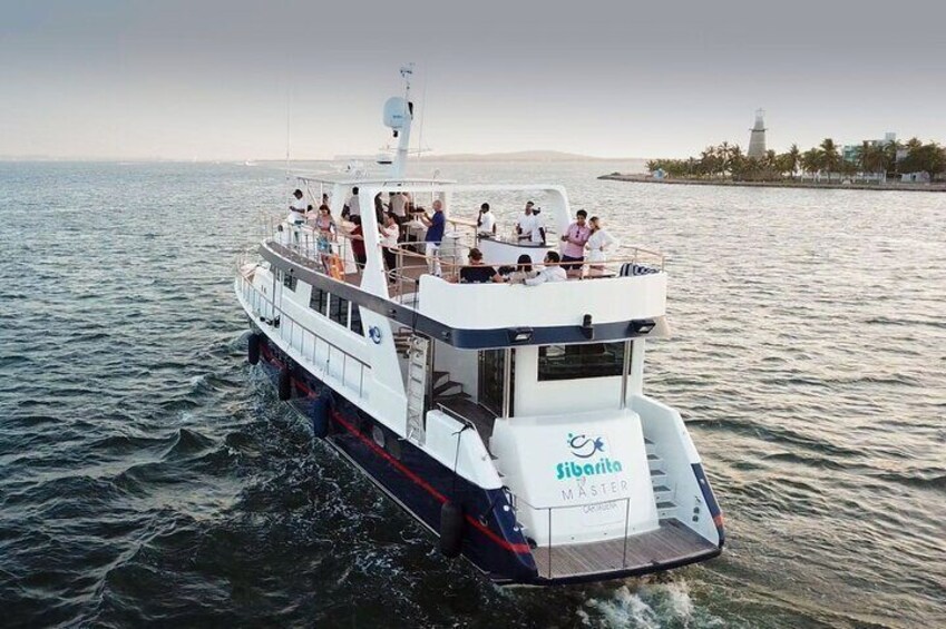 Coucher de soleil sur la baie de Carthagène, en Colombie, sur un yacht de luxe