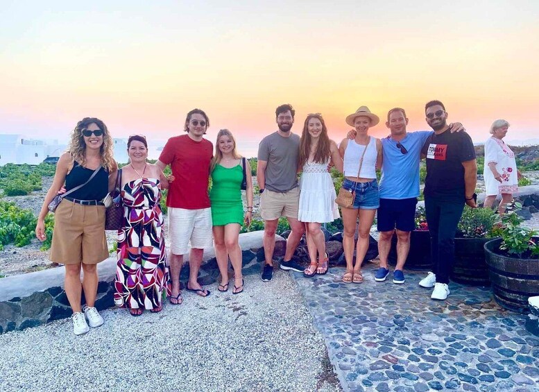 Visitez 2 vignobles traditionnels santoriniens et dégustez les vins de l’île, tels que Assyrtiko et Vinsanto.