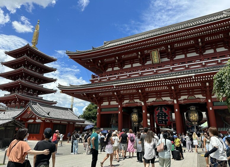 Ensuite, continuez vers le temple Asakusa Kannon, également connu sous le nom de Sensō-ji, le plus ancien temple de Tokyo. Écoutez les commentaires de votre guide sur l’artisanat ancien du temple, puis profitez d’un peu de temps libre pour vous promener de manière indépendante.